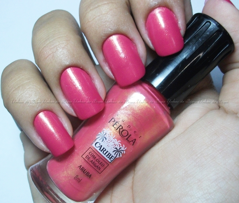 Depois de ficar vários dias sumida (problemas pessoais que me deixaram muito triste e sem vontade de esmaltar as garras), retorno com um esmalte lindo e mutante! Ganhei o Aruba da Super Pérola da representante da marca e ficava namorando ele, pensando em alguma combinação legal.