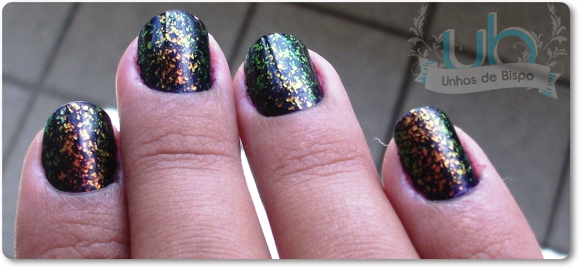 Minhas unhas ficaram refletindo tons de cobre, laranja e verde… Um verdadeiro luxo! Todo mundo perguntava que esmalte eu estava usando… Me achei! hahaha