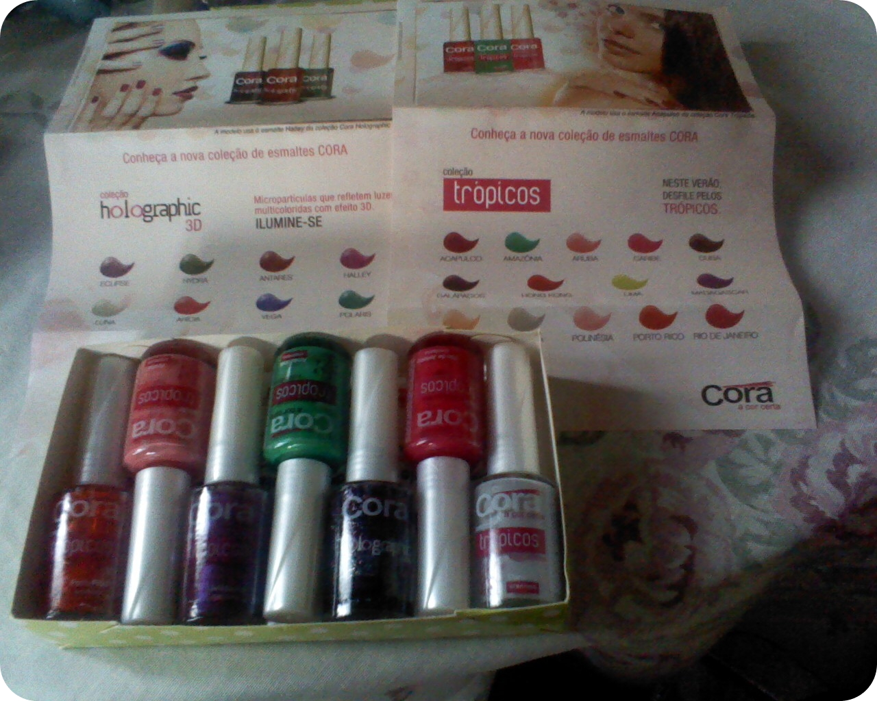 Bom, eu recebi essa coisinha maravilhosaaa! Minhas amostras de Esmalte Cora para testar e dar minha humilde opinião, também vou fazer propaganda nas lojas e salões, claaro.