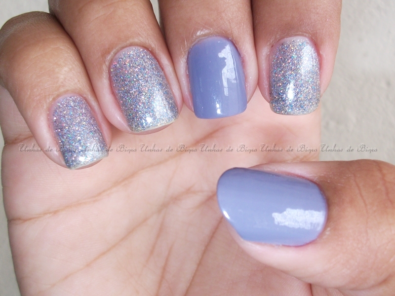 Foram quatro camadas do H10 pra fechar bem só com os glitters (eu sei, sou louca), duas camadas do Gaúcha Provocante, uma camada de Fissativo da Volare no “mindinho” (que fez o glitter mudar de cor) e uma camada de Mega Shine da Impala nos demais pra ninguém mudar de cor.