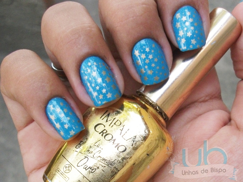 Usei meu amado Ouro da Impala e a placa m84 da Konad pra estrelar minha misturinha maravilhosa! Gostei do resultado, mas resolvi passar extra brilho pra durar mais e ficou assim…