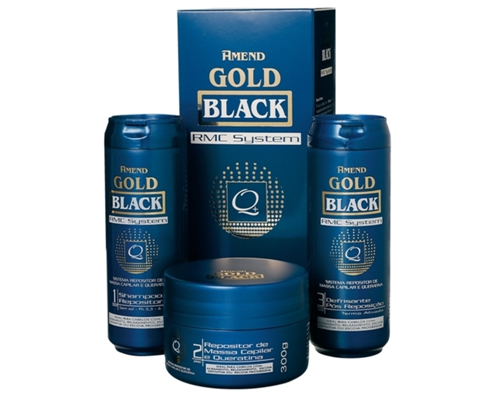 O Sistema Repositor de Massa Capilar e Queratina Gold Black traz em sua fórmula o revolucionário RMC System enriquecido com Queratina Hidrolisada. Ideal para a reestruturação e reconstrução interna e externa dos fios processados quimicamente. Ele repõe a massa capilar perdida dos cabelos, devolvendo a resistência e condição original da fibra capilar. É indicado também para tratar os cabelos, antes de submetê-los a processos químicos, pois além de melhorar a performance do alisamento, ele repõe cimento celular e a cadeia de queratina do fio.