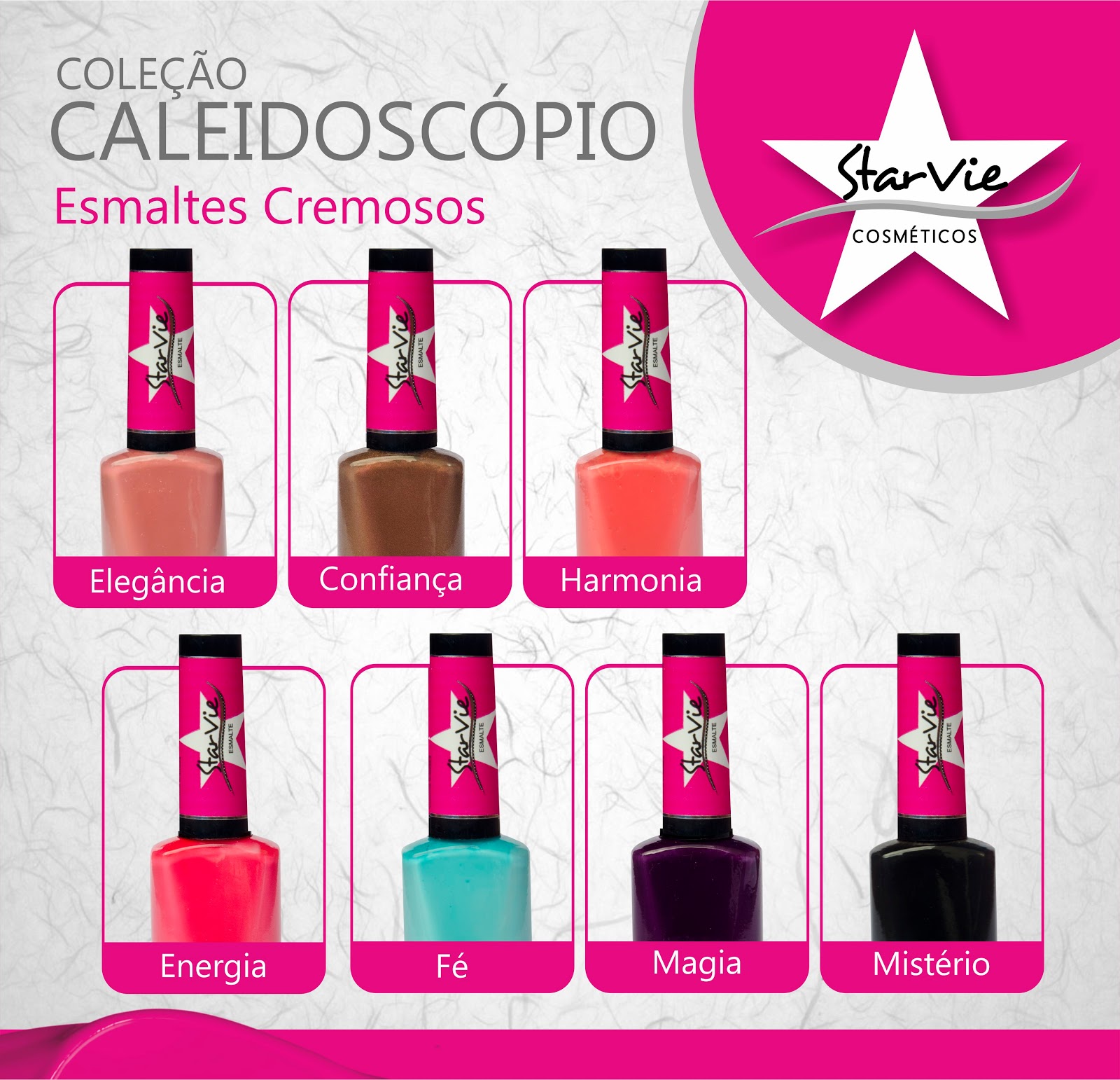 Chega ao mercado brasileiro uma marca de esmalte que veio para nos fazer brilhar como estrela, que afirma pensar em cada uma de nós na hora da criação das cores e coleções… Estou falando da StarVie Cosméticos, uma marca que promete ser a nova estrela dos cosméticos! São 21 esmaltes divididos em 4 coleções, 2 bases e 1 top coat: