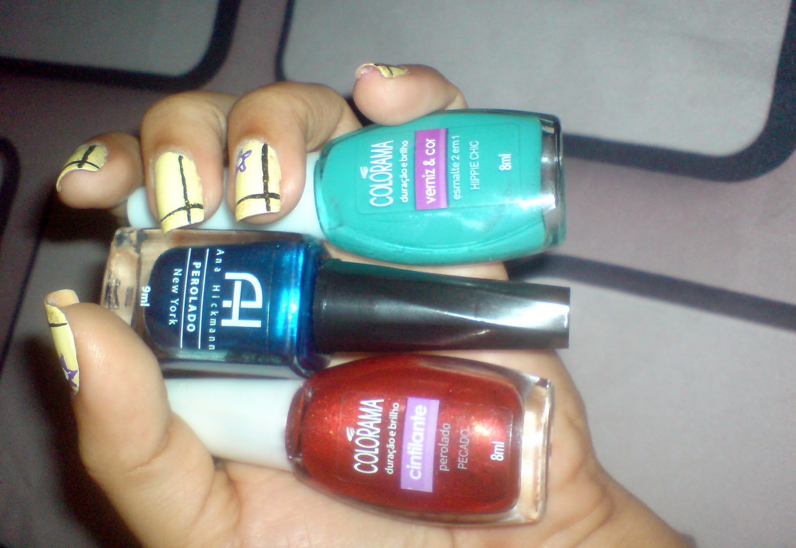 Top 5 de esmaltes: New York (Ana Hickimann), Hippie chic (Colorama), Pecado (Colorama) e os Expression of Night, Fireworks ambos do Top Beauty Ultimate 3D