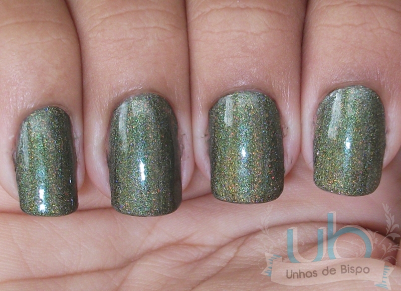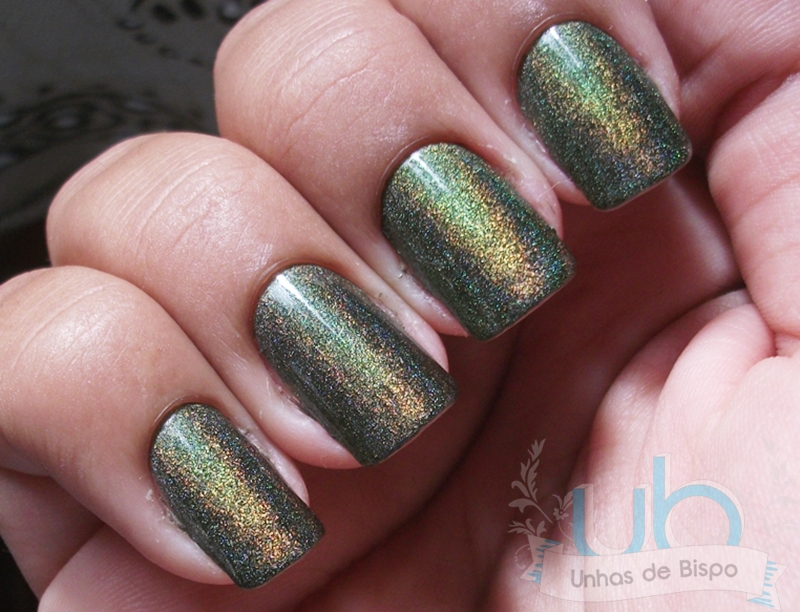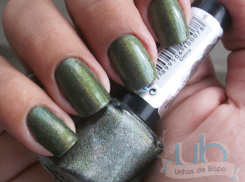O Única faz jus ao nome tanto na cor quanto na esmaltação! A cor é muito linda e só precisou de uma camada… Gente, holográfico que cobre com uma camada?! Manda um barril pra mim porque esse eu quero estocar!