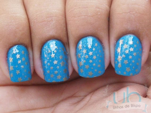 Usei meu amado Ouro da Impala e a placa m84 da Konad pra estrelar minha misturinha maravilhosa! Gostei do resultado, mas resolvi passar extra brilho pra durar mais e ficou assim…